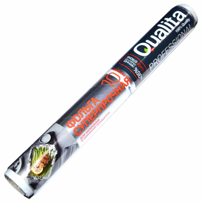Фольга, изготовленная из алюминия, предназначена для хранения и упаковки продуктов, а также приготовления блюд в духовке или на гриле. Она сохраняет витамины и микроэлементы, естественную свежесть, вкус и аромат пищевых продуктов. Не рекомендуется использовать для хранения влажных, кислых или соленых продуктов.