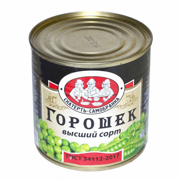 Зеленый горошек СКАТЕРТЬ-САМОБРАНКА- горошек консервированный высшего сорта, изготовленный по ГОСТ. Имеет сладковатый вкус и приятный аромат. Зеленый горошек широко используют для приготовления салатов, первых и вторых блюд. Имея яркий аппетитный вид, продукт послужит украшением для любого стола.