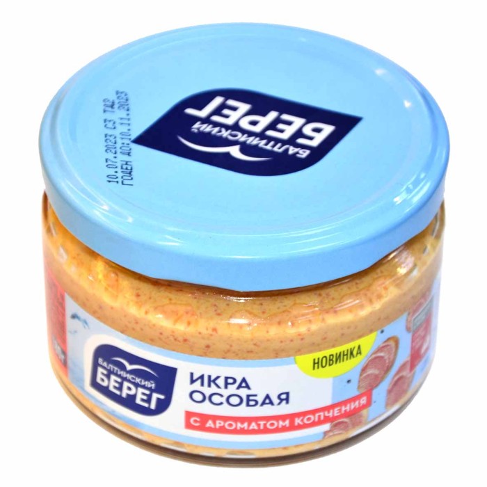 Рыбное кулинарное изделие, имитированная икра слабосоленая в соусе на основе растительных масел с ароматом копчения пастеризованная Икра особая.