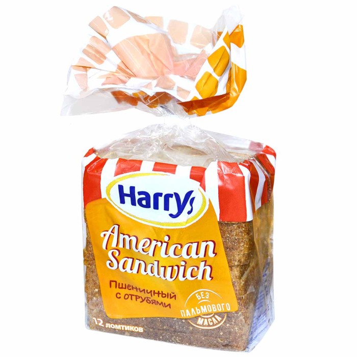 Сандвичный хлеб с отрубями марки Harry's American Sandwich – мягкий, с тонкой корочкой и нежным вкусом. Этот хлеб идеально подходит для жарки в тостере, сандвичнице, духовке и ростере. При нагревании он подрумянивается снаружи, но внутри остается мягким и упругим. Советуем хлеб с отрубями для сандвичей с бужениной, вареным яйцом, дижонской горчицей и маринованными огурцами. Для сочности добавьте хрустящий «айсберг». Попробуйте, как вкусно!