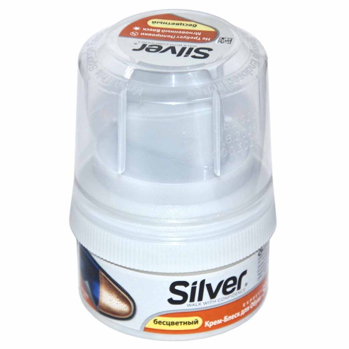 Крем-блеск для обуви Silver бесцветный изготовлен из натурального воска. Его можно использовать для обуви, сумок, любых аксессуаров из натуральной и искусственной кожи. Мгновенно придaёт блеск.