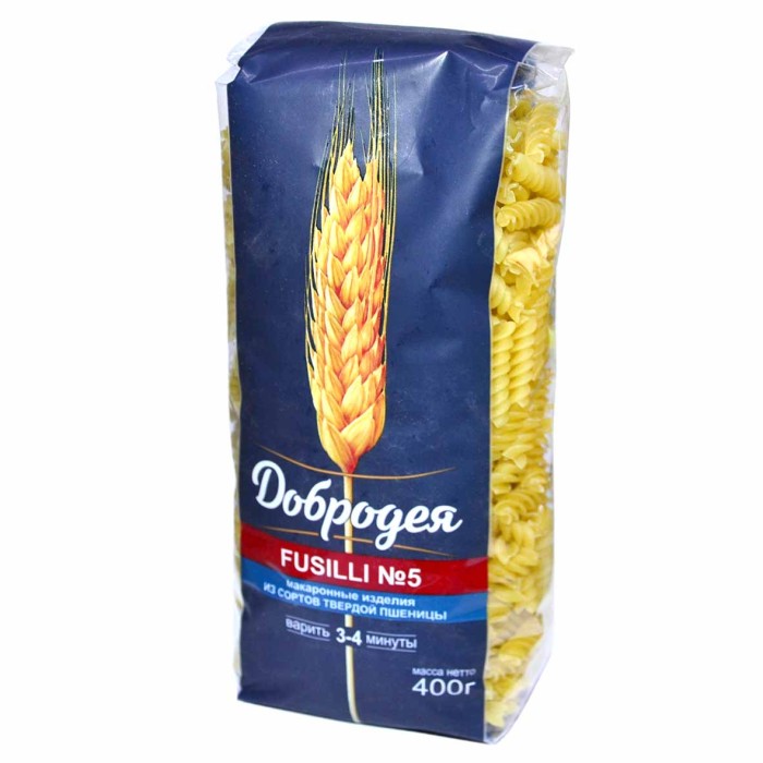 Фузилли №5 ТМ "Добродея"- классические итальянские макаронные изделия в виде спирали. Благодаря своей форме они идеально удерживают на поверхности любой соус. Фузилли лучше всего подходят к соусам на основе мяса или сыра рикотта, но так же хороши в сочетании с овощными соусами, приготовленными на основе томатного соуса с баклажанами, сладким перцем, оливками и каперсами. Также фузилли прекрасно раскрывают свою индивидуальность в свежести салатов. Кроме того, фузилли нередко можно встретить в качестве ингредиента запекаемых блюд. Для итальянской кулинарной традиции характерна подача, с легкими простыми маренадами, на основе сливок, сыра и морепродуктов.. Рекомендуем: Лапша яичная домашняя резаная в составе аутентичных блюд азиатской и русской кухни знают и любят во всём мире. Её делают из пшеничной муки, которая придаёт лапше нежную текстуру.