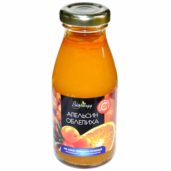 Состав: Апельсиновый сок, облепиховый сок (прямого отжима), сахар, стабилизатор-пектин, антиокислитель - аскорбиновая кислота, вода питьевая.