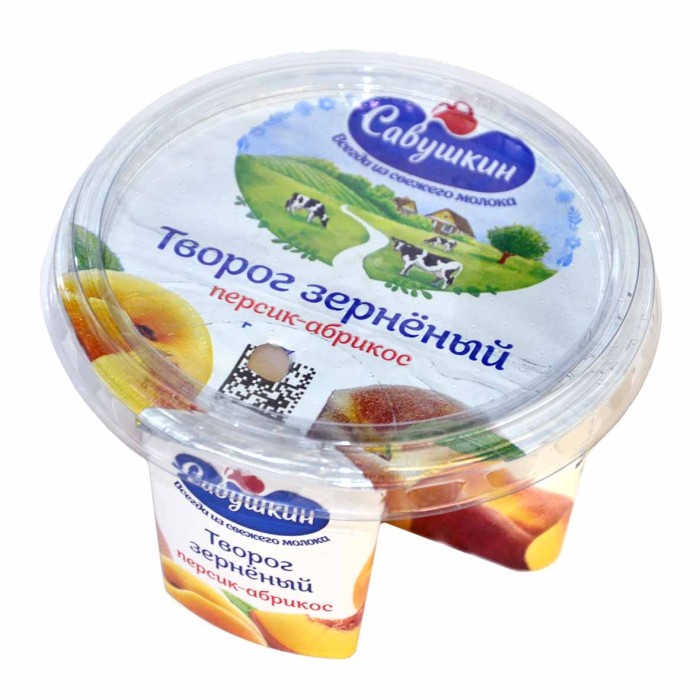 Зерненый творог с фруктовым наполнителем в удобном двухкамерном стаканчике, что позволяет самостоятельно смешивать творожные зерна с фруктовым наполнителем в необходимой пропорции.