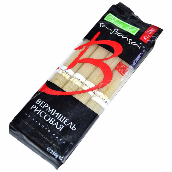 Вермишель из белого риса SanBonsai используется как в азиатской, так и в европейской кухне, заменяя привычные спагетти. Количество необходимых для организма питательных веществ в такой вермишели больше, чем в обычных спагетти - рис всегда был продуктом продлевающим жизнь и молодость.